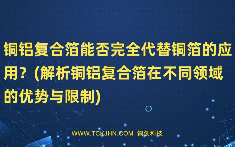 銅鋁復合箔在不同領域有著廣泛的應用前景,但是否能完全替代銅箔,還需要根據(jù)實際需求和性能要求進行評估。鋁在高溫氧化和導電性能方面的局限性,以及銅箔在導電性能和電流傳輸方面的優(yōu)勢,使得銅鋁復合箔無法取代所有銅箔的應用。然而,在一些對機械性能、耐腐蝕性和導熱性能要求較高的領域,銅鋁復合箔已經(jīng)展現(xiàn)出了巨大的潛力,將逐漸取代部分傳統(tǒng)的純銅箔應用。隨著科技的不斷進步和工藝的改進,相信銅鋁復合箔在未來的應用范圍會更加廣泛。